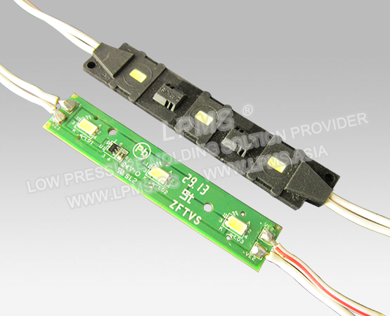 低壓注塑工藝運(yùn)用于各式LED串燈、LED模組等的防水包封中, 對(duì)比傳統(tǒng)灌膠工藝與高壓注塑工藝,具有固化周期短、生產(chǎn)效率高、無(wú)損電子元器件、不良率低,注塑好的產(chǎn)品防水等級(jí)高等特點(diǎn),正被越來(lái)越多的LED廠(chǎng)商采用。