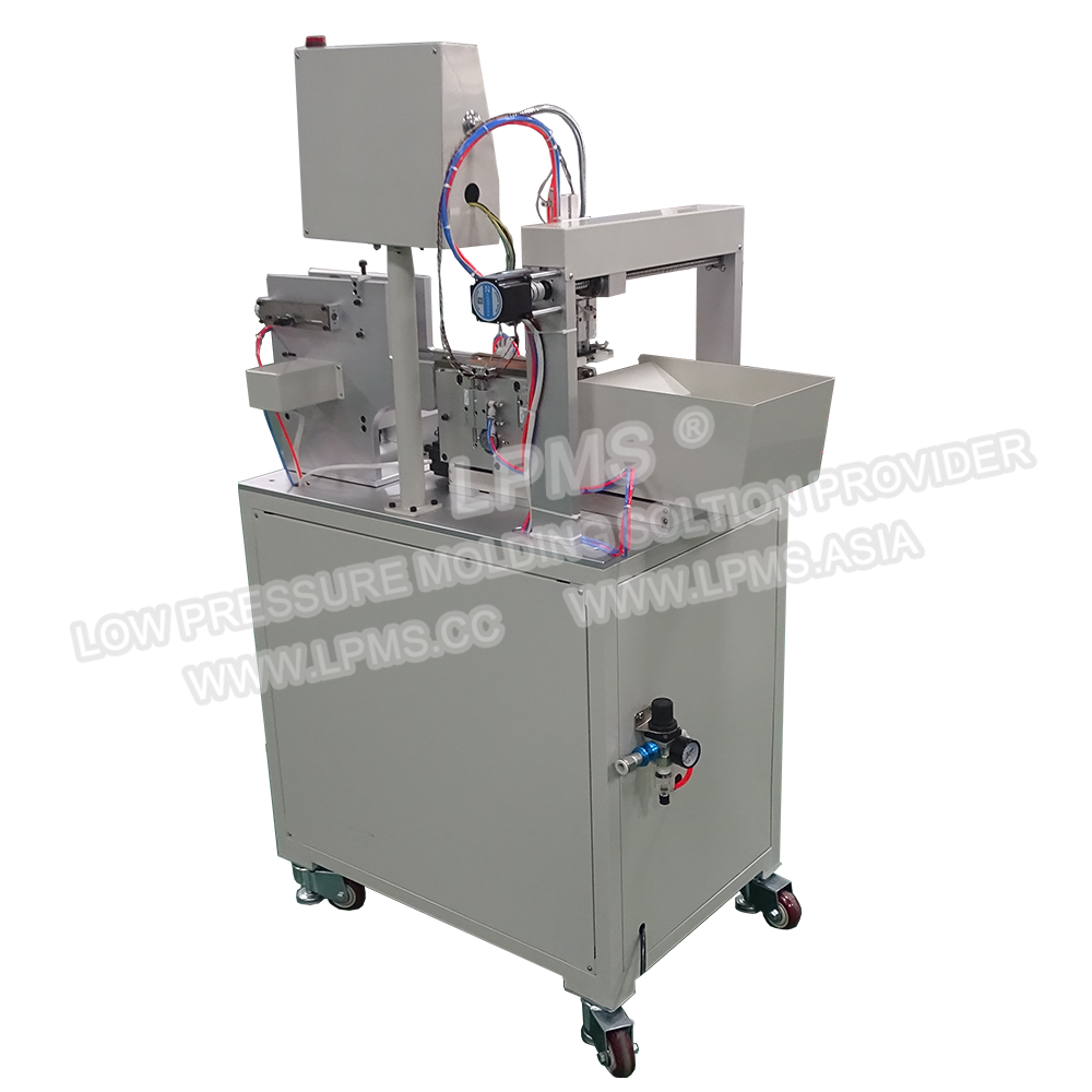 測試完成的保護板會自動從移動工作臺上送出,  並落入接料盒內。